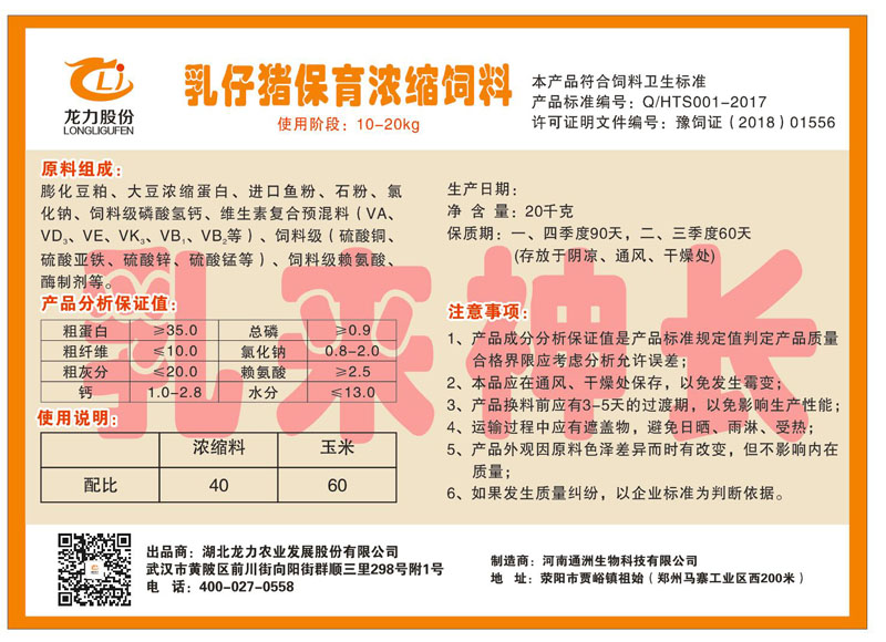 湖北龍力農(nóng)業(yè)發(fā)展股份有限公司坐落于武漢市黃陂區(qū)前川街向陽(yáng)街群順三里298號(hào)附1號(hào)。公司成立于2014年6月,公司自成立以來把“創(chuàng)全球最大養(yǎng)豬綜合服務(wù)”為企業(yè)愿景。致力于打造教保料品牌”作為公司發(fā)展的明確目標(biāo)。公司一直致力于豬營(yíng)養(yǎng)的研究和開發(fā),積極與國(guó)內(nèi)外高校和科研機(jī)構(gòu)合作,推廣養(yǎng)豬技術(shù)、動(dòng)物營(yíng)養(yǎng)新概念,向世界農(nóng)牧企業(yè)學(xué)習(xí)與合作。公司采用國(guó)內(nèi)先進(jìn)的生產(chǎn)工藝,選擇高精度電子配料秤,高均勻度、無殘留混合機(jī)等先進(jìn)設(shè)備....